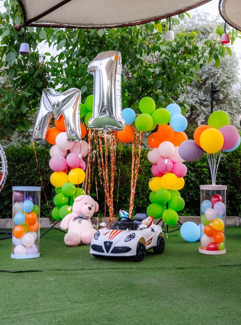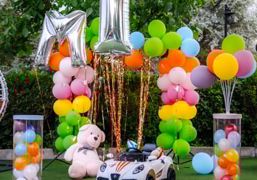 Renkli Dekorasyon: Temanıza uygun balon süslemeleri ve şık masa düzeni.